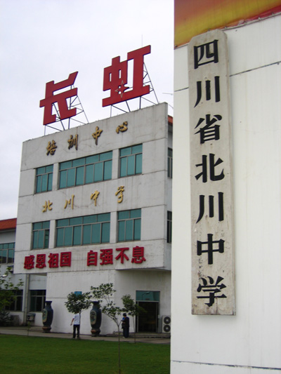 “5.12”地震中,北川中學(xué)的2800多名師生里有上千人遇難。除了一棟老教學(xué)樓,校舍全部倒塌損毀。為了安全,據(jù)長虹培訓(xùn)中心主任侯慶國介紹,地震后第二天,學(xué)校的很多師生就轉(zhuǎn)移到了綿陽市九州體育館。后來在長虹集團(tuán)的幫助下,北川中學(xué)于5月19日在其培訓(xùn)中心復(fù)課。復(fù)課儀式上,長虹集團(tuán)送來了從學(xué)校廢墟中找到的校牌——這段故事已成為佳話。
