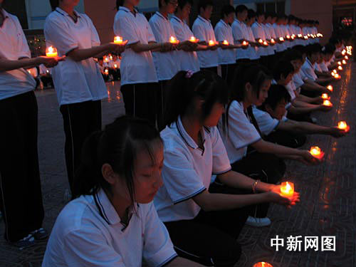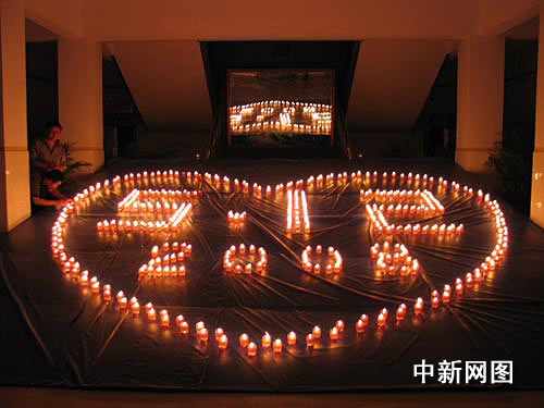中新網(wǎng)隴南5月12日電 (記者 劉薛梅 張通飛) 11日晚上8點(diǎn),隴南市第二中學(xué)校園內(nèi),660名學(xué)生點(diǎn)燃蠟燭組成了一個(gè)“燭光大道”,校門正前方的多媒體教室內(nèi),300支蠟燭構(gòu)成了一個(gè)巨大的心形圖案,里面用蠟燭寫著“512”、“2008”。這里正在舉行一場(chǎng)詩歌朗誦會(huì),紀(jì)念地震一周年。