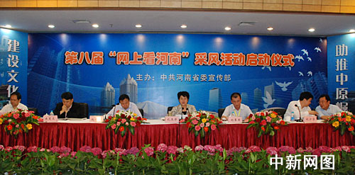 中新網(wǎng)5月25日電 5月25日,以“建設(shè)文化強(qiáng)省,助推中原崛起”為主題的第八屆“網(wǎng)上看河南”采風(fēng)活動(dòng)在河南省會(huì)鄭州啟動(dòng)!眮(lái)自50多家中央和地方重點(diǎn)新聞網(wǎng)站及部分知名商業(yè)網(wǎng)站的負(fù)責(zé)人和采編人員組成兩隊(duì)分別趕赴南、北兩線(xiàn)進(jìn)行采風(fēng),南線(xiàn)采訪(fǎng)平頂山、許昌、商丘、開(kāi)封4市,北線(xiàn)采訪(fǎng)洛陽(yáng)、焦作、鶴壁、安陽(yáng)4市。
