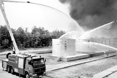 15時(shí)15分,就在圍剿接近尾聲時(shí),現(xiàn)場突然出現(xiàn)意外,一名殘余“恐怖分子”引燃身上所攜帶炸藥,將廠區(qū)內(nèi)兩個(gè)化工原料儲存罐炸毀,造成大量有毒化學(xué)氣體泄漏。廠區(qū)內(nèi)頓時(shí)濃煙滾滾,火光沖天。面對緊急情況,消防力量馬上出擊,展開滅火、化學(xué)品罐堵漏、毒氣源稀釋等工作。同時(shí)環(huán)保、氣象和衛(wèi)生力量也馬上進(jìn)行空氣監(jiān)測、中毒人員緊急救治等工作。大約半小時(shí)后,人質(zhì)和中毒人員全部得到緊急救治,廠區(qū)周圍有毒氣體濃度也降到安全值以內(nèi),周邊地區(qū)和首都北京的安全得到了保障。演習(xí)結(jié)束。