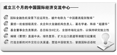 社科院、國研中心等機(jī)構(gòu),有的長于經(jīng)濟(jì)理論研究,有的長于國內(nèi)經(jīng)濟(jì)研究,而國經(jīng)中心更注重國際經(jīng)濟(jì),并結(jié)合國內(nèi)經(jīng)濟(jì)走向展開對(duì)策性研究,把握火候報(bào)送中央高層,用曾培炎理事長的話講,是發(fā)揮“臨門一腳”的作用。在運(yùn)作上是開放式,既堅(jiān)持研究的原創(chuàng)性,又不斷吸收其他中外研究機(jī)構(gòu)有實(shí)用價(jià)值的成果。比如中心成立以來已有20個(gè)課題在網(wǎng)上公開招標(biāo)。將于6月下旬啟動(dòng)的“經(jīng)濟(jì)每月談”,請年輕人主講,向全社會(huì)開放。