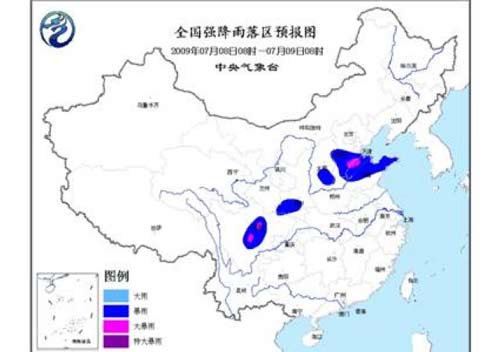 中新網(wǎng)7月8日電 中央氣象臺8日06時(shí)發(fā)布暴雨橙色警報(bào):預(yù)計(jì),今天白天到夜間,川西高原東部和四川盆地西部、陜西南部、山西南部、河北南部、山東中北部和山東半島等地有 暴雨,其中,四川盆地西部、河北東南部、山東北部部分地區(qū)有大暴雨。