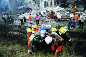 救援人員運(yùn)送傷員。15日凌晨2時(shí)左右,河南省偃師市顧縣鎮(zhèn),河南洛染股份有限公司發(fā)生劇烈爆炸事故,“約有10噸氯苯發(fā)生了爆炸”,已造成7人死亡,108名被震碎的玻璃劃傷的周邊群眾仍在醫(yī)院接受治療。