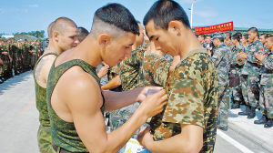 這時(shí),一名俄方隊(duì)員從褲兜里掏出一枚徽章,遞到對面的中方隊(duì)員手中。由于比賽在即,中方隊(duì)員接過徽章后就往褲兜里放。哪知,俄方隊(duì)員迅速從他手中拿過徽章,親手給中方隊(duì)員佩戴在了迷彩短袖衫上。這名中方隊(duì)員會心一笑,與其再次擊掌,然后共同抓起拔河的大繩。觀戰(zhàn)的中俄官兵看到這一情景,立即報(bào)以熱烈的掌聲。