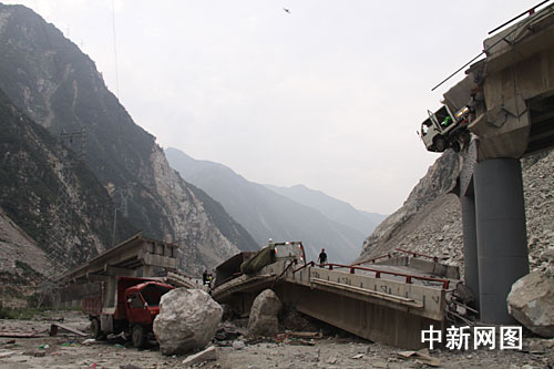 7月25日凌晨4:10左右,由于連日大雨沖擊,汶川縣國道213線都汶路44KM+200處,因山體滑坡造成徹底關(guān)大橋橋墩被垮塌的巨石砸斷。