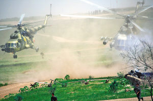 本報(bào)吉林洮南7月26日電 記者柴永忠、孫兆秋報(bào)道:茫茫草原,狂飆乍起?茽柷卟菰钐,歷時(shí)5天的“和平使命—2009”中俄聯(lián)合反恐軍事演習(xí)今天舉行最后一次大規(guī)模實(shí)兵演習(xí)。