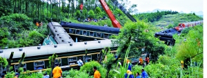 經(jīng)初步調(diào)查認定,列車脫軌原因是由于連日持續(xù)強降雨造成山體崩塌掩埋鐵軌所致。