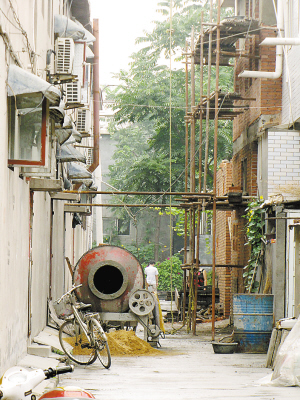 昨天上午,記者從位于談固?hào)|街的大門進(jìn)去,首先映入眼簾的是一棟剛建好的四層樓。繼續(xù)往里走,道路上不時(shí)出現(xiàn)小型攪拌機(jī)的影子,一堆堆的沙土堆放在道路中間。