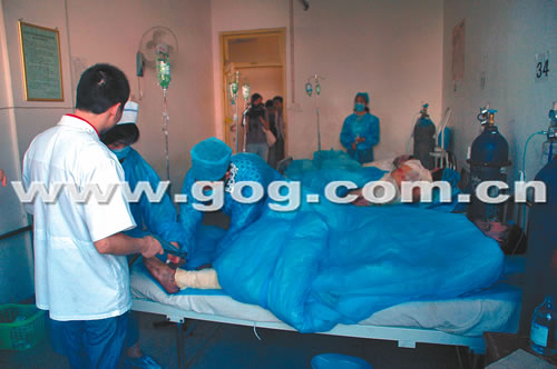 昨晚6點(diǎn)前,記者從事故現(xiàn)場趕到縣城林東醫(yī)院,該院醫(yī)護(hù)人員正在全力搶救張興友、孔凡寶等3名大面積燒傷的重傷礦工。到記者發(fā)稿前獲悉,3名重傷礦工張興友、孔凡寶、楊恩才,根據(jù)有關(guān)領(lǐng)導(dǎo)的安排,已于當(dāng)晚連夜轉(zhuǎn)送往貴醫(yī)附院繼續(xù)搶救治療。