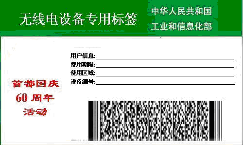 第五條 進(jìn)入特殊控制區(qū)域使用的無(wú)線(xiàn)電臺(tái)(站)和無(wú)線(xiàn)電發(fā)射設(shè)備,應(yīng)當(dāng)由工業(yè)和信息化部無(wú)線(xiàn)電管理局或者北京市無(wú)線(xiàn)電管理局進(jìn)行核驗(yàn),粘貼“首都國(guó)慶60周年活動(dòng)無(wú)線(xiàn)電設(shè)備專(zhuān)用標(biāo)簽”(具體樣式見(jiàn)附件,以下簡(jiǎn)稱(chēng)專(zhuān)用標(biāo)簽),并在專(zhuān)用標(biāo)簽上注明的時(shí)間、區(qū)域內(nèi)使用。