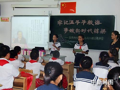 主題班會(huì)上,淮陰師范學(xué)院第一附屬小學(xué)的學(xué)生們還向淮安全市的少先隊(duì)員發(fā)出了“牢記溫爺爺?shù)慕虒?dǎo),像周總理一樣從小樹立‘為中華之崛起而讀書’遠(yuǎn)大志向”的倡議。淮安市委書記劉永忠、淮安市委常委、宣傳部長劉希平等領(lǐng)導(dǎo)參加了主題班會(huì),并向孩子們贈(zèng)送圖書,鼓勵(lì)孩子們牢記溫總理的教導(dǎo),好好學(xué)習(xí),將來為家鄉(xiāng)的建設(shè)做貢獻(xiàn)。