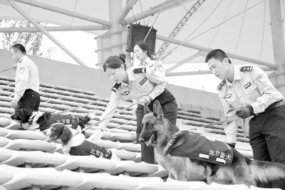 來(lái)自北京、天津、內(nèi)蒙古等11個(gè)省市及解放軍北京軍犬基地的近200條國(guó)慶安保警犬,近日亮相北京警察訓(xùn)練總隊(duì),進(jìn)行國(guó)慶安保集體誓師。據(jù)了解,這些警犬目前正在警察訓(xùn)練總隊(duì)進(jìn)行專(zhuān)業(yè)技術(shù)強(qiáng)化訓(xùn)練,在國(guó)慶安保工作中,這支警犬技術(shù)隊(duì)伍將承擔(dān)搜爆、安檢以及刑事案件、突發(fā)事件現(xiàn)場(chǎng)處置等多項(xiàng)工作。