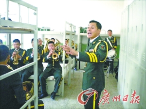來自武警廣東省總隊(duì)軍樂團(tuán)的31位戰(zhàn)士住在8號樓,戰(zhàn)士們在這里已經(jīng)住了兩個(gè)多月,每天除了背讀樂譜就是演奏訓(xùn)練,單調(diào)乏味也異常辛苦。