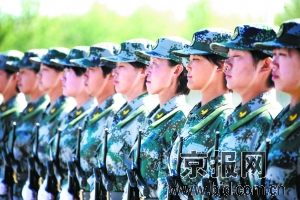 在女民兵方隊,隊員們訓(xùn)練歸來最愛開的一個玩笑,便是撩開“劉海兒”,欣賞各自腦門上那道黑白分明皮膚,互相打趣:“咱們可以給美白護(hù)膚產(chǎn)品作‘活廣告了’!