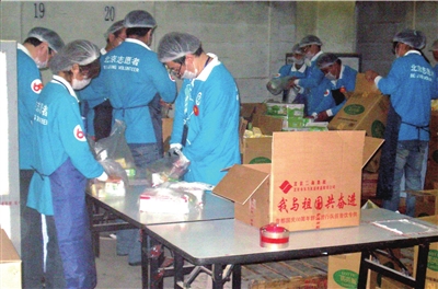 東方友誼公司曾負責奧運期間的食品配送工作,但這次過于集中,比奧運時期的任務更為艱巨,僅分揀裝箱一項就需要440名工作人員兩班倒連續(xù)工作兩天才能完成。