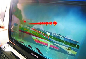昨天下午1時許,位于密云的群眾游行訓練場。參加演練的群眾還未到場,一群技術(shù)人員卻已經(jīng)忙碌開了:指揮臺上架起的兩排筆記本電腦,屏幕上一個個惟妙惟肖的“動畫人”排成的方陣,正邁著整齊的步伐,依次通過酷似天安廣場的虛擬場景,這場面乍看上去很像是個逼真的電子游戲。