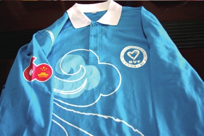 “奧運(yùn)期間志愿者穿著印有祥云圖案藍(lán)色上衣的形象已經(jīng)深入人心,因此此次沿用了清爽的亮藍(lán)色!眹(guó)慶志愿者服裝設(shè)計(jì)師、北京服裝學(xué)院賀陽(yáng)老師介紹,衣服上的圖案源于漢唐時(shí)期的經(jīng)典祥云圖案,凸顯了當(dāng)今一派祥和的盛世景象;衣服左胸印有北京志愿者聯(lián)合會(huì)的標(biāo)志,借此傳達(dá)志愿者們用心服務(wù)的志愿精神;右臂處紅色國(guó)慶60周年慶祝活動(dòng)標(biāo)志以白底為襯,黃色膠印的天安門城樓以及上方的五星圖案以浮雕效果示人,彰顯此次慶典活動(dòng)的重大意義;背面中英文對(duì)照的“北京志愿者”字樣,明確了志愿者們的身份。(陳蕎)
