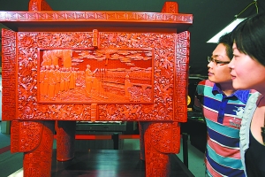 由雕漆工藝完成的鼎盛中華造型以司母戊鼎為原型,重達300多斤。制作時先經(jīng)過半年時間刷上240多層漆,再在1.2厘米厚度的漆面上進行手工雕刻。其正面以油畫“開國大典”為內(nèi)容,背面題為“中華賦”及長城圖案。象牙作品以長兩米、重320斤的百年“老”象牙材料為基,以56個民族載歌載舞為主題,背景是30處世界文化遺產(chǎn)。象牙、雕漆、玉器和景泰藍(lán)被譽為工藝美術(shù)界的“四大名旦”,另外兩項巨作景泰藍(lán)“太平有象”和玉雕“九龍浴佛”也將陸續(xù)亮相。 (記者耿諾)