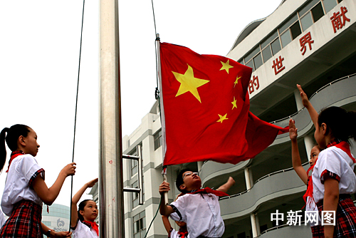 學(xué)生們向國(guó)旗宣誓:熱愛(ài)祖國(guó)、志存高遠(yuǎn),開(kāi)拓進(jìn)取、團(tuán)結(jié)友愛(ài),學(xué)好本領(lǐng)、全面發(fā)展,做有中國(guó)特色社會(huì)主義事業(yè)的合格建設(shè)者和接班人,為中華民族的繁榮昌盛貢獻(xiàn)我們的力量!