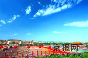 不經(jīng)歷風(fēng)雨怎能見(jiàn)彩虹!似乎是對(duì)偉大祖國(guó)60年來(lái)走過(guò)的不平凡道路的真實(shí)寫(xiě)照,慶典前的天安門廣場(chǎng)在經(jīng)歷電閃雷鳴后終于撥云見(jiàn)日,迎來(lái)湛藍(lán)的天空和燦爛的陽(yáng)光。今天上午10時(shí),廣場(chǎng)上空天高云淡,日朗風(fēng)清,慶典典禮在良好的天氣條件下隆重舉行。