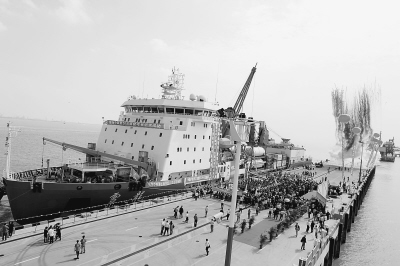 10月11日上午10時許,我國第26次南極科學(xué)考察隊(duì)乘坐“雪龍”號極地科考船,從上海浦東外高橋的中國極地考察國內(nèi)基地出發(fā),啟程前往南極。