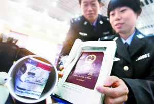 針對偷渡犯罪的猖獗,邊檢總站加大培訓(xùn)民警識別偷渡人員的力度,同時采取高科技檢測手段識別偽假證件。記者在現(xiàn)場看到,目前民警使用的最新式檢查護(hù)照簽證儀器,最小只有鼠標(biāo)大小,可隨身攜帶,還有快速“刷”護(hù)照的證件閱讀機(jī),民警把護(hù)照在機(jī)器上一“刷”,讀取信息同時就能識別護(hù)照上的防偽標(biāo)識。