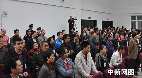 中新網(wǎng)重慶10月21日 (銀雪 張瑞雪 藍(lán)曉蓉 陳勝友 何欣) 21日上午10時,重慶市第三中級人民法院在南川區(qū)人民法院第一審判庭對劉鐘永等22名被告人進(jìn)行一審公開宣判,劉鐘永被判處死刑,鄭新被判處死刑、緩期二年執(zhí)行,其余20名被告人分別被判處一年至十七年不等有期徒刑。
