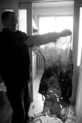 蘭建國(guó)遇害前所穿警服已被取回家中。警服背后有幾十處破痕,泥土和血跡混在一起。背心上也有幾十處小孔,呈三片分布,血跡斑斑。警褲也有劃痕。李海燕表示,其丈夫頸部、背部、腿部傷痕累累,刀傷共達(dá)50多處。針對(duì)網(wǎng)上流傳的一根手指被逃犯切斷后用于開啟指紋門一事,她說:“小蘭(蘭建國(guó))的10根手指都在手上,其中右手拇指從虎口處被切開,幾乎斷裂,僅靠皮連著手掌。”