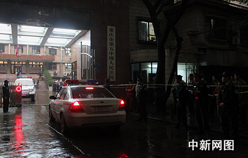 盡管早上的山城雨霧蒙蒙、天氣灰暗。中新社記者在重慶市第五中級法院門口看到,各路媒體記者已在法院內(nèi)外忙碌?梢耘月犕彽挠浾咴9點(diǎn)以前便通過嚴(yán)格安檢、進(jìn)入法庭;在法院門口,聚集了數(shù)十位本地和外地媒體記者和百名群眾,一位外國媒體記者也在現(xiàn)場采訪圍觀群眾。