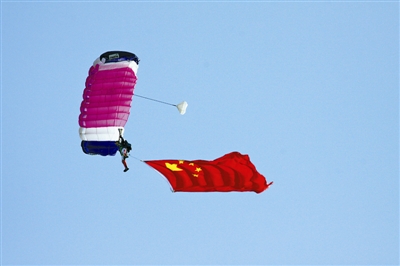 這個大隊組建于1958年,曾9次打破世界紀錄,29次打破全國紀錄,先后參加珠海國際航展、澳門回歸、法國空軍“巡邏兵飛行表演”等20多次重大跳傘表演,被國家體育總局授予“勇攀高峰運動隊”榮譽稱號。( 郭洪波、記者李建文)