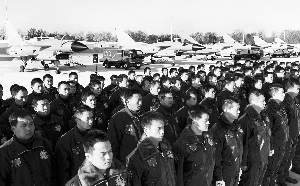 昨日,八一飛行表演隊(duì)所在空軍航空兵某師,為近日將舉行的飛行表演誓師。