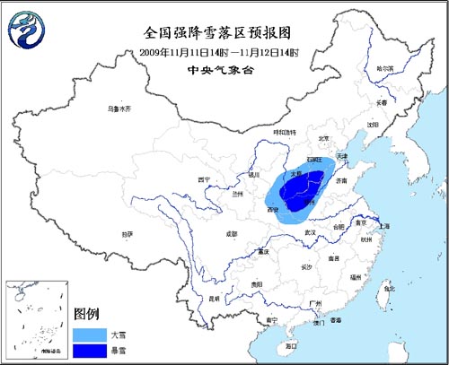 中新網(wǎng)11月11日電 中央氣象臺(tái)11日10時(shí)發(fā)布暴雪橙色警報(bào):受冷暖空氣的共同影響,預(yù)計(jì)今天下午到明天中午,陜西中部、山西中南部、河北中南部、河南北部和西部、湖北西北部、山東西北部等地有大雪,其中,陜西中部的局部地區(qū)、山西南部、河北南部、河南北部等地有暴雪,降水量一般有8~16毫米,局地達(dá)20毫米以上。