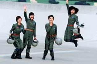 10月1日上午,盡管首都北京上空陽光明媚,但殲擊機女飛行員駐訓的華北某機場,云底高500米、云頂高1200米,能見度只有1.3公里。這種情形下能不能按時起飛,既是意志的考驗,也是生死的考驗。她們以忠誠無畏的戰(zhàn)斗決心,迅速確定了長僚機組500米跟進起飛集合方案,梯隊飛機56秒內一次全部升空。梯隊飛到1200-1300米高度,一直在兩個云層的夾縫中飛行,直到通州上空氣象條件好轉后才穿出云層。到達天安門廣場上空時,面臨氣流較大、自重較輕的教練機嚴重顛簸的情況,姑娘們以良好的心理素質和過硬的飛行技術,保持了隊形和精度,秒米不差地通過人民英雄紀念碑上空。