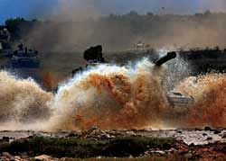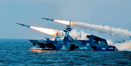 秋冬之交,各軍兵種按新大綱施訓(xùn)進(jìn)入高潮,實(shí)戰(zhàn)化、模擬化、基地化訓(xùn)練扎實(shí)開展,復(fù)雜電磁環(huán)境下訓(xùn)練迅速普及。被冠之以“xx—2009”代號(hào)的實(shí)兵演習(xí)此起彼伏,波瀾壯闊。北京軍區(qū)某旅探索現(xiàn)代城市進(jìn)攻作戰(zhàn),鐵甲部隊(duì)突入街衢樓宇;成都戰(zhàn)區(qū)探索陸空聯(lián)合戰(zhàn)術(shù)兵團(tuán)訓(xùn)練,空地一體鑄就“合璧雙劍”;南京軍區(qū)紅方加強(qiáng)裝甲旅快速機(jī)動(dòng),靈活向前;北海艦隊(duì)“海上狙擊手”劈波斬浪,在復(fù)雜海況中主動(dòng)出擊;濟(jì)南軍區(qū)某紅軍師在“無(wú)形天網(wǎng)”中闖關(guān)奪隘,晝夜激戰(zhàn)……