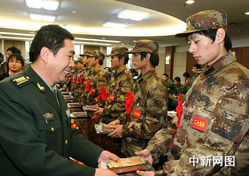 中新網(wǎng)鄭州12月11日電(記者 趙暉 通訊員 馬昕)10日,鄭州大學(xué)為今年應(yīng)征入伍的16名大學(xué)生新兵舉行了隆重的歡送會,鄭州警備區(qū)司令員李建華、政治部主任史安平到現(xiàn)場為新兵送行,勉勵他們在部隊勤奮學(xué)習(xí)、刻苦訓(xùn)練、踏實工作,為國防現(xiàn)代化建設(shè)奉獻青春和才智。