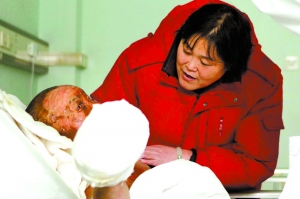 龍淑芳說,她找電話求助時(shí),聽到身后“噗”的一聲。她回頭看見丈夫身上燃起了大火,現(xiàn)場(chǎng)人員立即撲滅了火。龍淑芳和八旬的婆婆被人強(qiáng)制送上一輛面包車時(shí),席新柱還躺在大廳的地上,身上冒著煙氣。事后,席新柱被送往304醫(yī)院搶救。