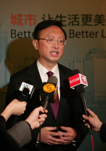 楊潔篪說,2010年世博會不僅是上海的世博會,中國的世博會,更是世界的世博會,是國際經(jīng)濟、社會與人文領(lǐng)域的一大盛會,是世界各國人民相互交流、謀求共同發(fā)展繁榮的歷史機遇,將成為世界經(jīng)濟和科技成果的展示平臺、文化藝術(shù)的交流平臺、國際交往的友誼平臺。中國政府高度重視上海世博會籌備工作,將舉全國之力,集世界智慧,為世界奉獻一屆精彩、成功、難忘的盛會,并與世界各國一道共享世博會帶來的發(fā)展機遇和成果。