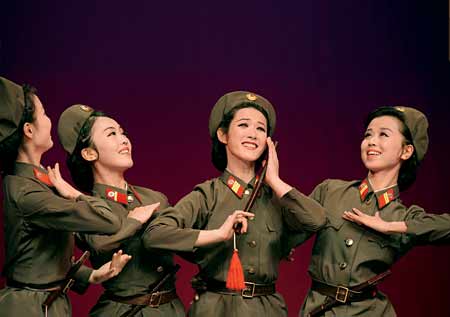 所有的演出沒有聲光電等現(xiàn)代化背景和裝飾,沒有特制的服裝和奇特的道具,沒有過多的包裝,但卻沒有一個假唱。她們演出的12個節(jié)目中,除兩個舞蹈節(jié)目外,女演員們全部穿軍裝表演。演員們的真情實感、精湛技藝、表演形態(tài)、人物刻畫,充分展現(xiàn)了深厚的民族藝術和人民軍豐富多彩的軍旅生活,贏得觀眾們發(fā)自肺腑的陣陣掌聲。