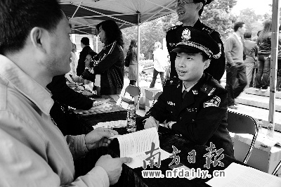 前來現(xiàn)場咨詢的群眾絡(luò)繹不絕。伍女士與丈夫帶著6歲的小孩一家子圍著現(xiàn)場的民警仔細(xì)地問。伍女士是江門臺(tái)山人,她1993年就來到廣州,在一家私人企業(yè)做工。工作了10多年,為了小孩讀書,勒緊了褲帶在越秀區(qū)文明路買了一套60多平方米的二手房,感覺自己多少有點(diǎn)像廣州人了。廣東即將推行居住證的消息讓她期待滿懷:“等了很久啊,現(xiàn)在看到了希望,有了戶口,才能真正讓自己在這里扎根下來啊!”