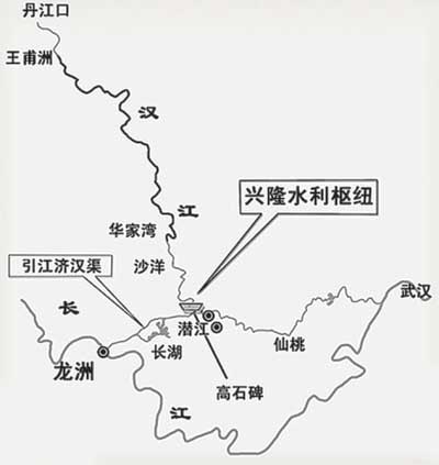 經(jīng)過(guò)多年?duì)幾h和論證,引江濟(jì)漢工程設(shè)計(jì)方案到2009年9月通過(guò)專(zhuān)家評(píng)審。根據(jù)設(shè)計(jì),從長(zhǎng)江荊江河段引水至漢江興隆河段,進(jìn)水口位于荊州市李埠鎮(zhèn),出水口位于潛江市高石碑鎮(zhèn),全長(zhǎng)約67公里。