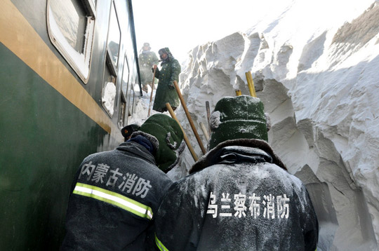 由于連日暴雪,由哈爾濱開往包頭的1814次客運列車3日晚18:48分被困于內(nèi)蒙古烏蘭察布商都縣。因為雪勢過大,前去救援的軌道車也一度被積雪所困。在3000多名救援人員的努力下,經(jīng)過30多個小時的緊急救援,被困在車上的1400名乘客全部安全獲救,列車也從積雪中成功撤出,該起事故沒有造成人員傷亡。