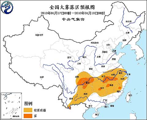 中央氣象臺2010年1月17日06時發(fā)布大霧藍(lán)色預(yù)警: