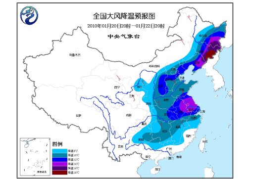 20日20時(shí)至22日20時(shí),華北、東北、寧夏、陜西、黃淮、江淮、江漢、江南等地將先后有4~6級、陣風(fēng)7級偏北風(fēng)。上述地區(qū)及華南北部、貴州等地的氣溫將下降8~12℃,其中,東北地區(qū)東部、江淮東部等地降溫幅度可達(dá)14~16℃,東北地區(qū)東南部的部分地區(qū)降溫達(dá)18~20℃。