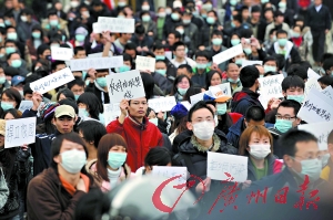 昨日下午1時(shí)許,空中不時(shí)飄灑著細(xì)雨,高明市民劉先生冒雨走在人群中!拔铱吹接薪M織者說(shuō)24日將舉行這個(gè)活動(dòng),于是我便報(bào)了名。”有網(wǎng)友在論壇上透露,通過(guò)論壇信件等各種方式報(bào)名的市民已經(jīng)達(dá)到數(shù)百人的規(guī)模。
