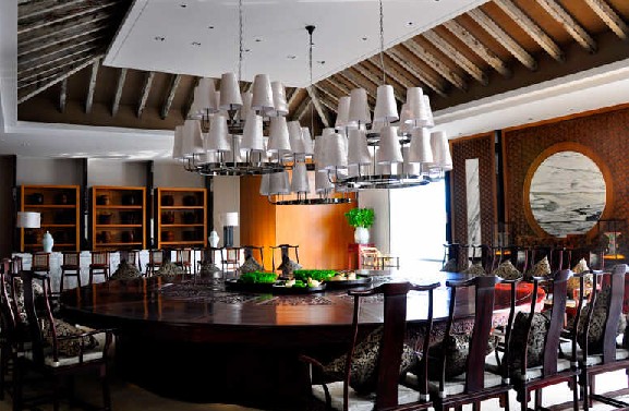 楊建平:這個(gè)濕地公園2008年底還是個(gè)建筑垃圾的堆場(chǎng)。因上有兩條高壓線、下有西氣東輸和長(zhǎng)江飲水通道兩條管網(wǎng),這里長(zhǎng)期缺乏管理。根據(jù)區(qū)政府要求,我們從2009年3月開始對(duì)這塊地方進(jìn)行生態(tài)修復(fù),做成了面積達(dá)375畝的生態(tài)濕地公園。這個(gè)過程中開發(fā)區(qū)管委會(huì)投入了2000多萬元,根據(jù)我們測(cè)算,建成后的養(yǎng)護(hù)費(fèi)用每年還要200萬元左右。為了讓濕地公園能夠自己消化這個(gè)養(yǎng)護(hù)成本,我們就想能不能在這里開一個(gè)飯店,一年能掙個(gè)一兩百萬元,這樣就能自己養(yǎng)活自己。于是就建了這個(gè)“村前會(huì)館”。