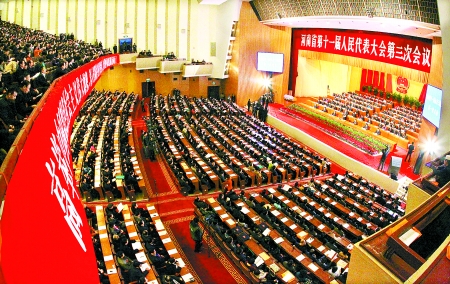 深入貫徹落實(shí)科學(xué)發(fā)展觀,奮力譜寫中原崛起新篇章。1月25日上午,河南省十一屆人大三次會議在省人民會堂隆重開幕。來自全省各地的省人大代表共聚一堂,共謀河南發(fā)展大計。