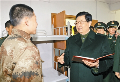 1月的關(guān)中大地寒風襲人,軍營里卻暖意融融。正在陜西省考察工作的中共中央總書記、國家主席、中央軍委主席胡錦濤,專程來到蘭州軍區(qū)某部高炮旅視察。