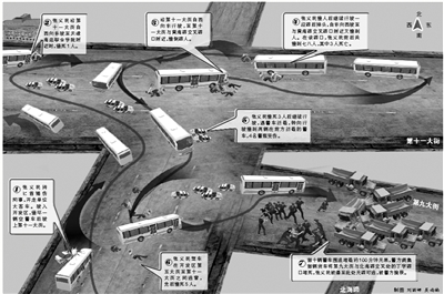 人群隨即散開,大家紛紛朝路邊跑了過去,騎車人丟下手中的自行車,騎摩托車的人也從摩托車上跳了下來,開轎車的則將車開上了馬路牙子。自行車、毛巾、皮包等各種雜物亂七八糟地堆滿了路面,大客車隨后軋了過去,再度撞倒了四五名來不及躲避的路人。在將路人撞倒后,大客車并未停車,而是自東往西繼續(xù)往前行駛。