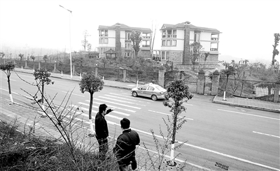 正在喂狗的時候,有兩輛車開了過來,車上10多個人一下來就迫不及待地倚著欄桿看里面的別墅!皠e墅真是豪華啊,在我們整個重慶找不到這好的了!”這些游客一個個看得很興奮,還有的在別墅邊照相留念。