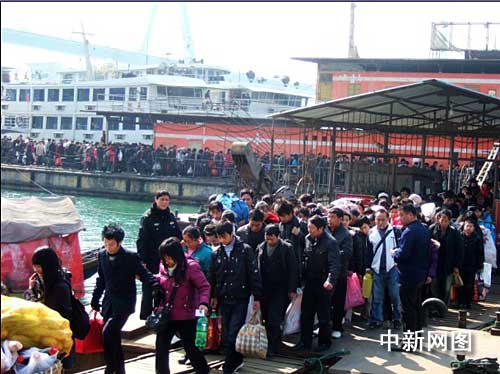2月20日,一連寂靜數(shù)日的宜昌港口迎來節(jié)后首次農民工出行高峰,19艘客船共10156人直接通過三峽、葛洲壩兩個船閘下行抵達了宜昌港。據(jù)宜昌港負責人介紹,當天共有37艘普通客船、18艘高速客船出川,創(chuàng)下今年春運以來日出川客流量最高峰。除19艘客船直接抵達了宜昌港外,還有36艘客船未過三峽船閘,直接駛入了三峽壩首的太平溪港和茅坪港,出川農民工下船后再乘轉運客車通過三峽專用公路抵達宜昌分流。